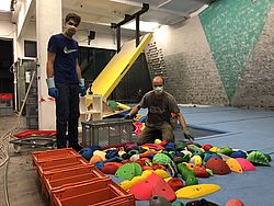 In 4:47h waren alle Griffe demontiert und fertig gewaschen. So macht das Ehrenamt spaß! Ein großes Dankeschön an die Mitglieder des AV Kuchl (Kletterhalle Kuchl) für die Unterstützung!
